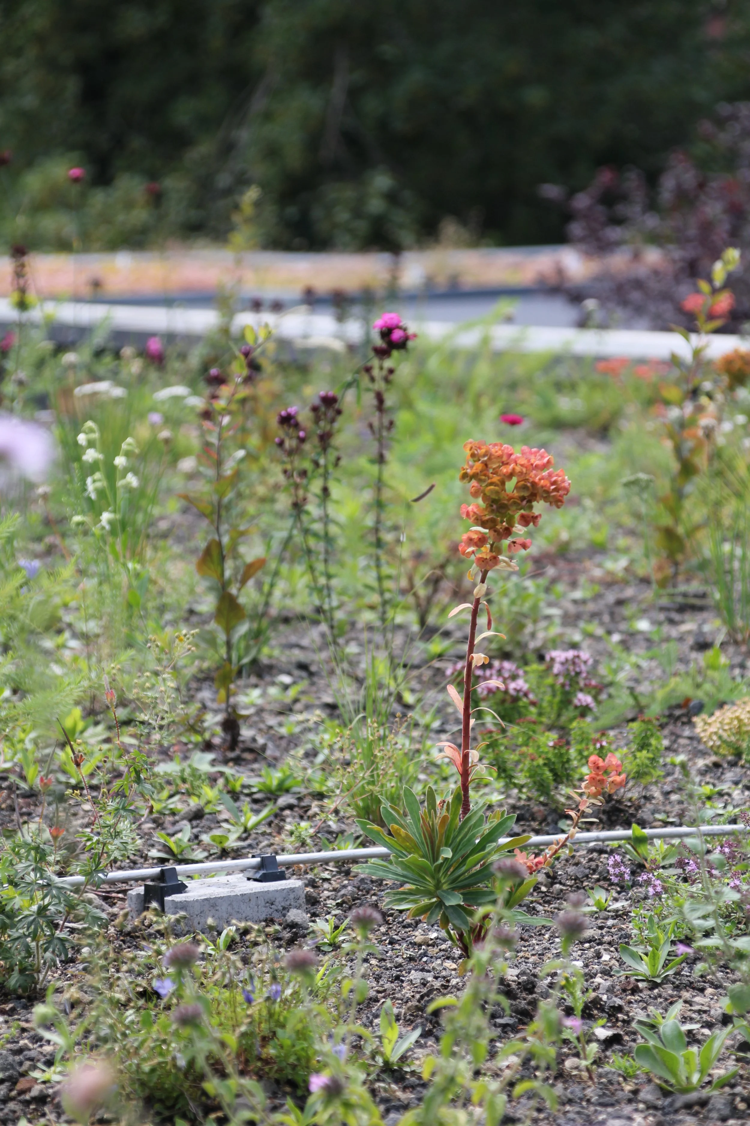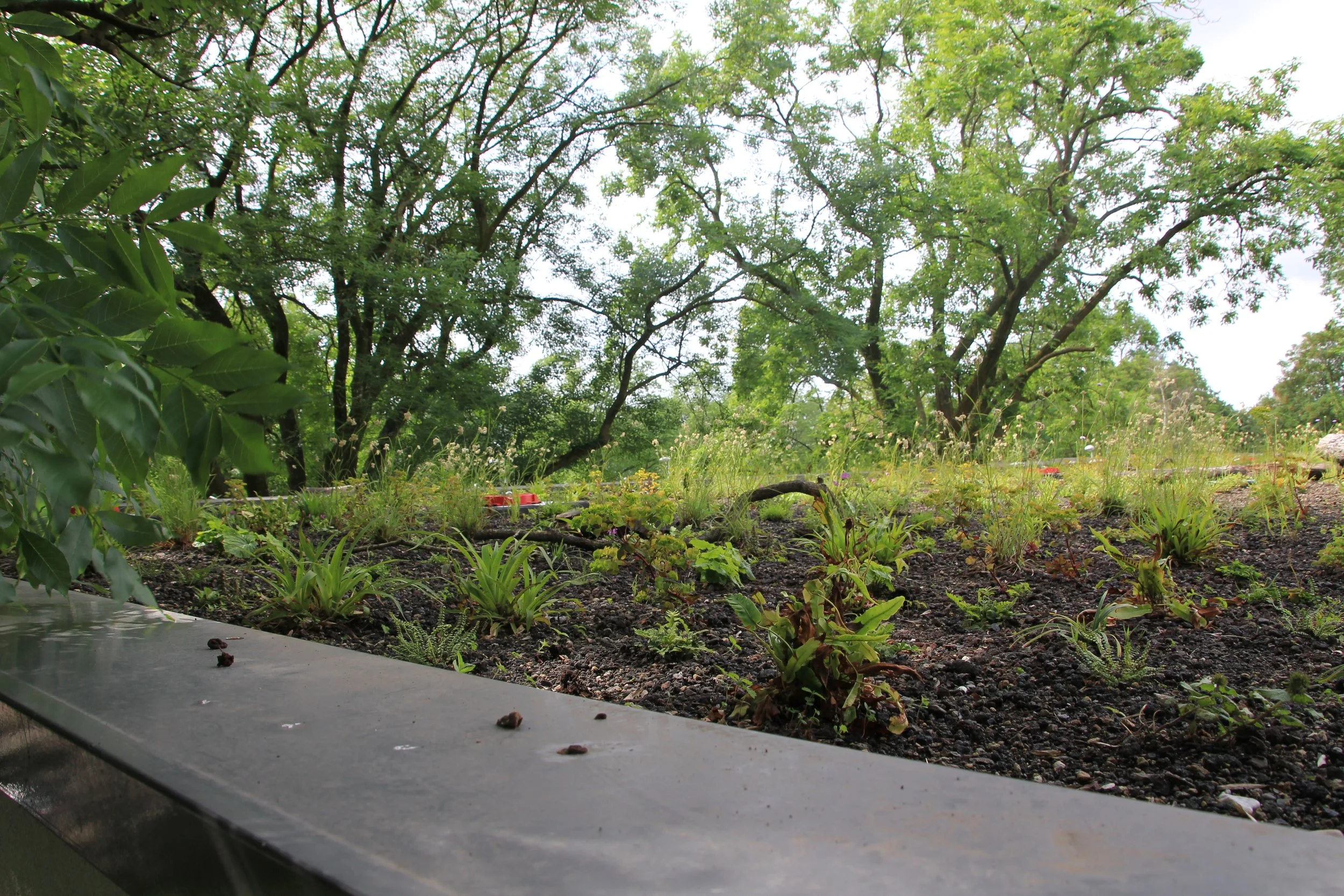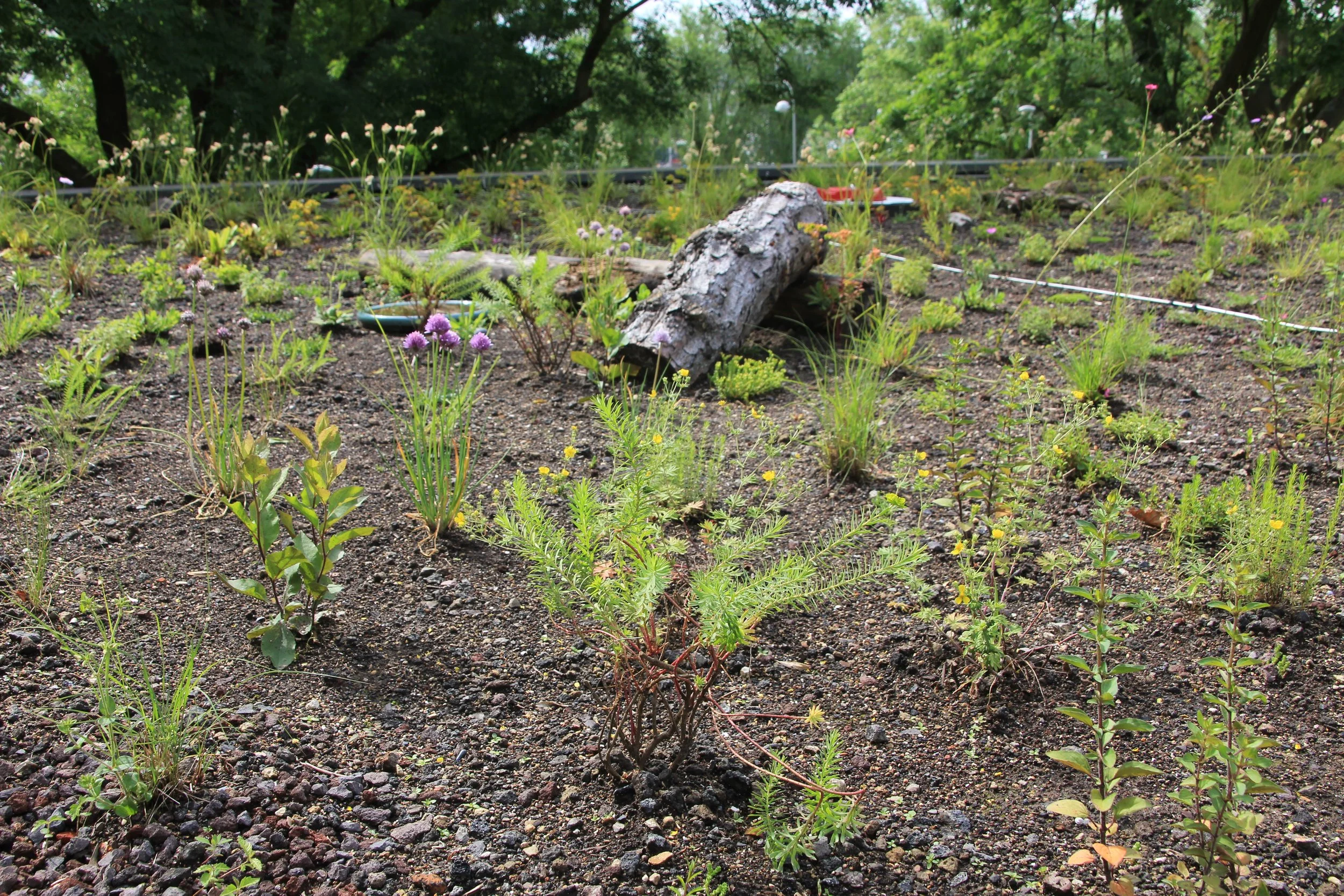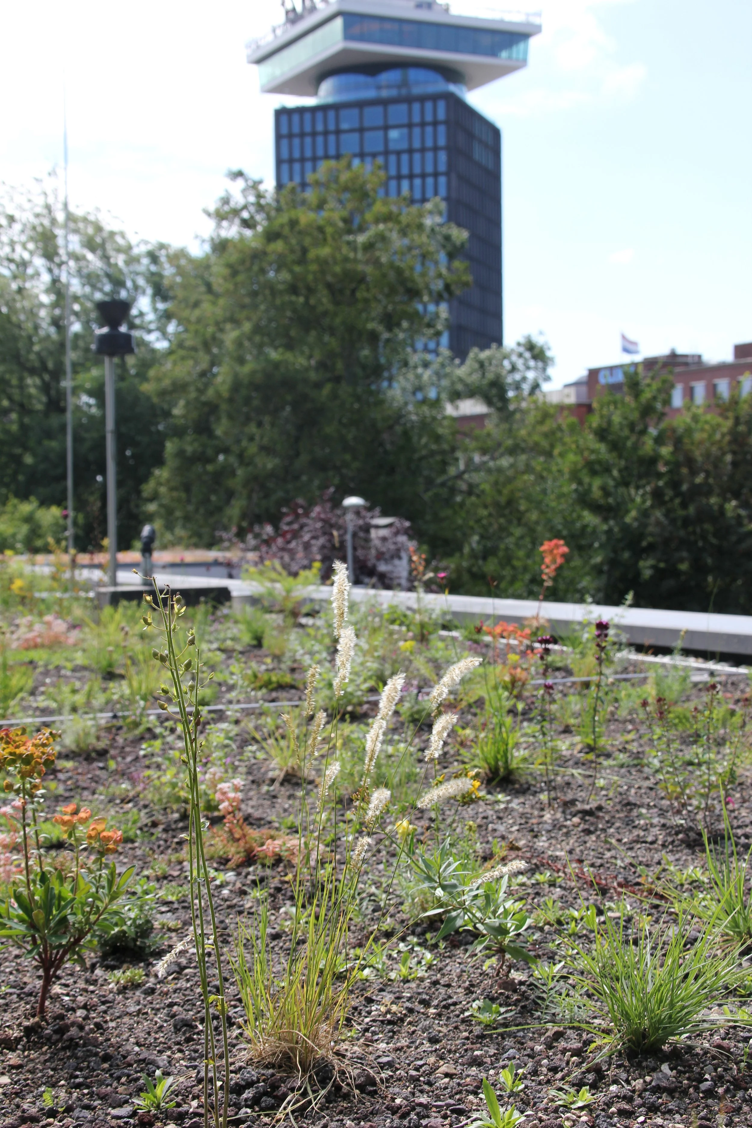 De daktuin combineert waterberging en beplanting: regenwater wordt opgevangen en vastgehouden, terwijl een diversiteit aan planten zorgt voor verkoeling en biodiversiteit. Dit draagt bij aan het verminderen van hittestress en het ondersteunen van stedelijke natuur.